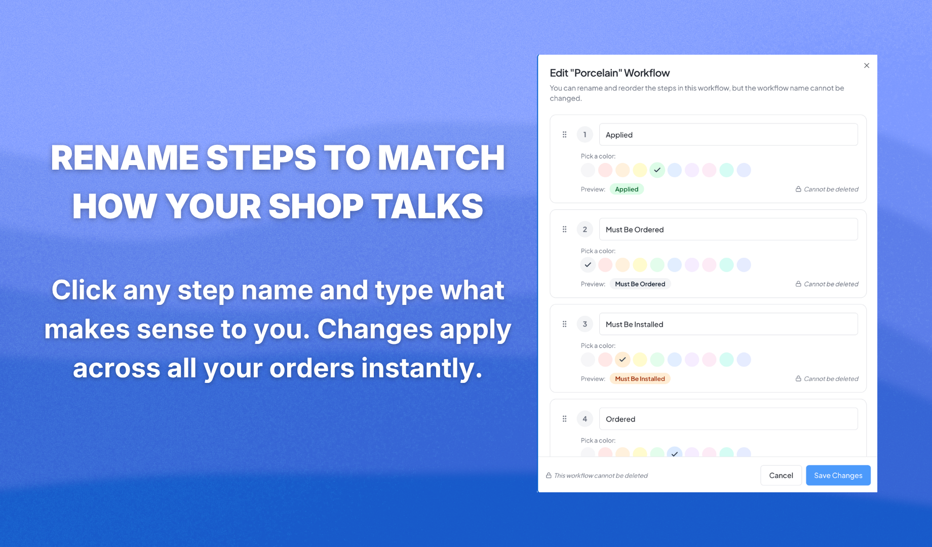 Your task settings got a major upgrade. You now have full control over how your tasks look, what the steps are called, and which ones show up on your orders.